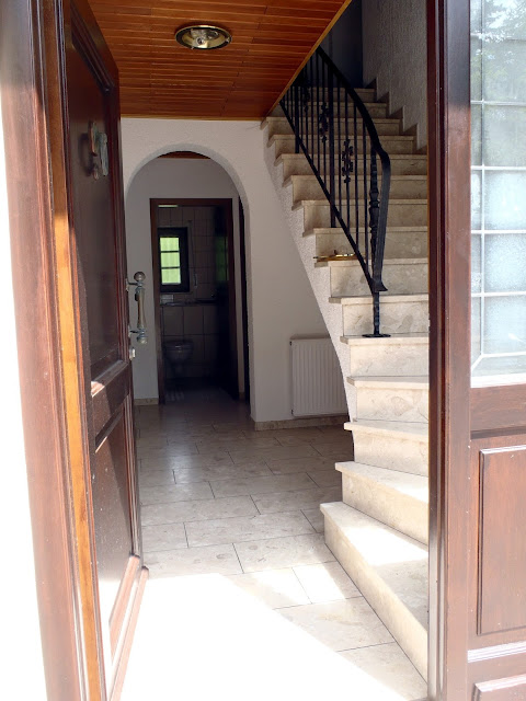 You may think this odd, as the house is just about the complete opposite of the last one I posted photos of. It's very small, recently built and located on the outskirts of a more populated town. It's really lovely both inside and out, not a potential fixer-upper like the other one. It has a real yard, a patio and garage. It is a two minute walk from a Kindergarten and a grocery store, where while Marius is gone I can buy fresh food for myself and Iris (in case I haven't mentioned it before, I don't drive). The town has a train station, numerous bus stops, and a couple of restaurants and shops.